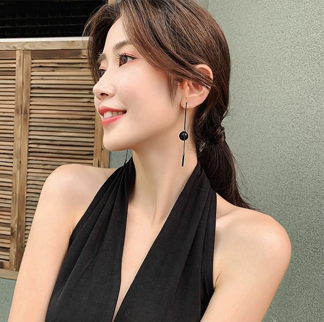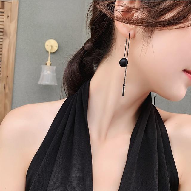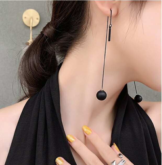 ピアス レディース 揺れる 黒 ロング チェーン ブラック ボール シンプル クール 大人 おしゃれ 個性的 結婚式 アクセサリー ジュエリー 耳飾り 高級感 大人カジュアル セ 上品