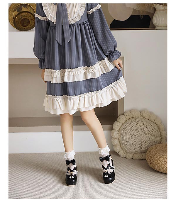 ロリータ ワンピース 花柄 レディース ゴスロリ ミモレ丈 クラロリ リボン 冬服 Aライン ハイウエスト ロリィタファッション レトロ風 クラシカル 上品 かわいい 日常着 通勤 お出かけ 仮 通学