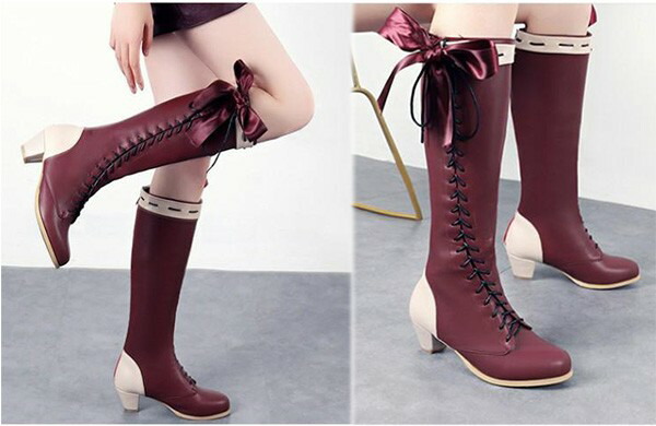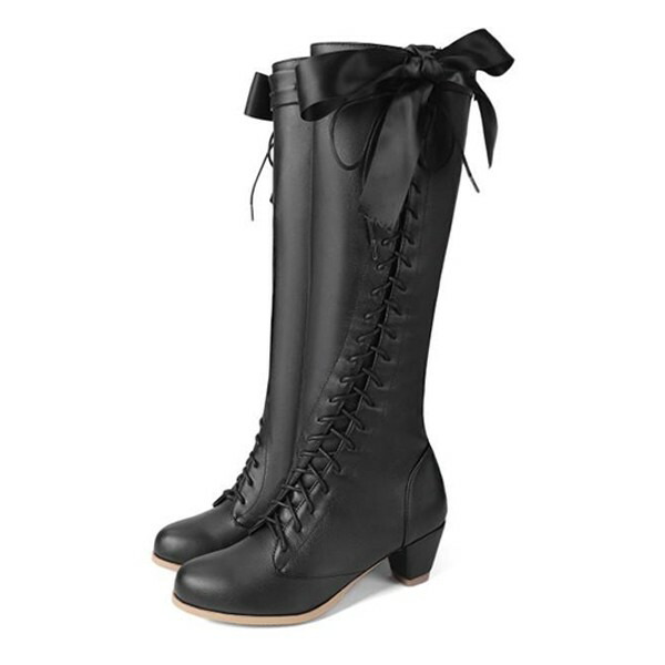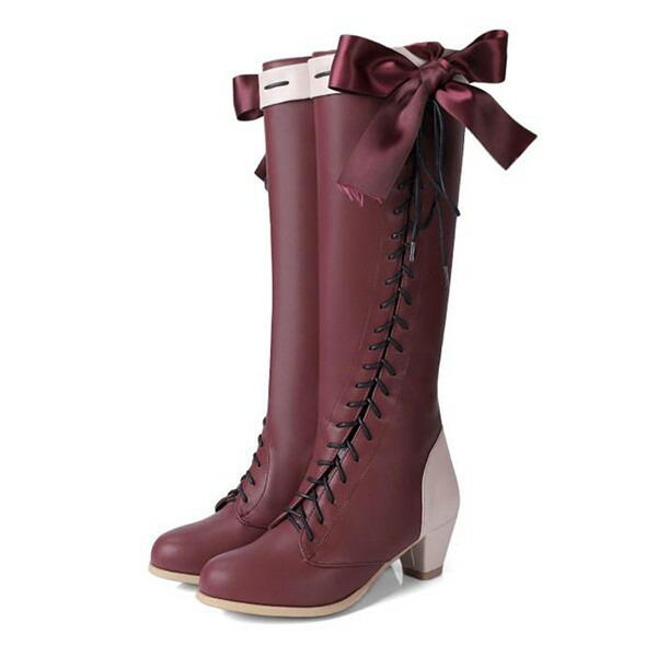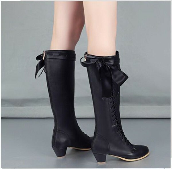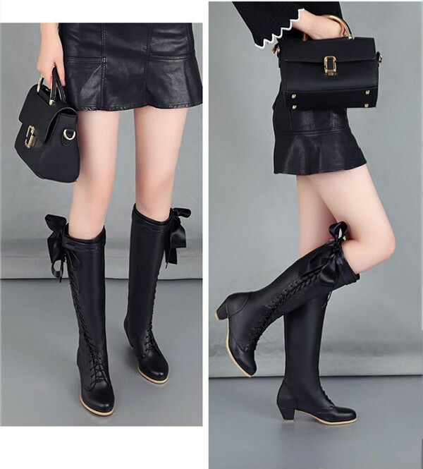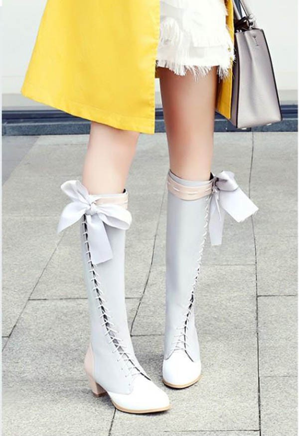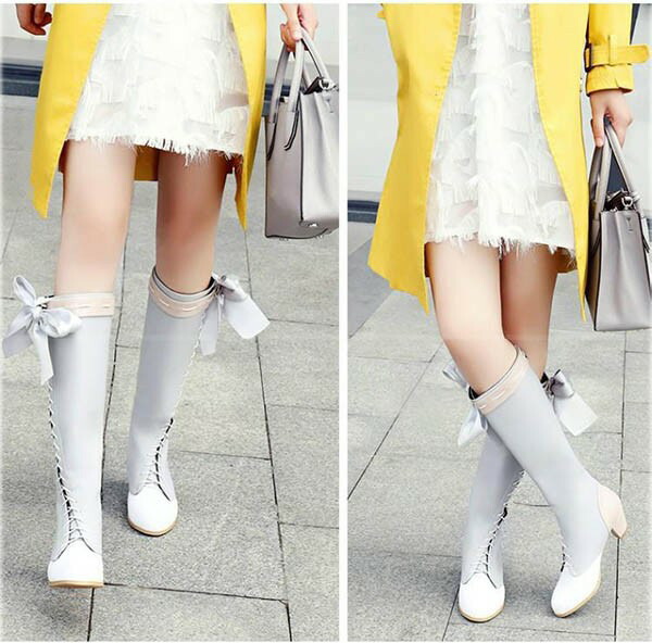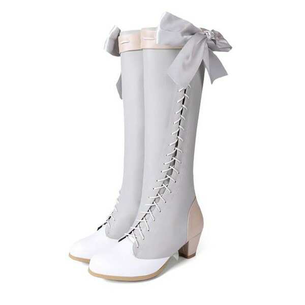 ロングブーツ ローヒール 4cm ロリータ リボン ゴシック 編み上げ レースアップ 歩きやすい チャンキーヒール バイカラー 太ヒール 美脚 カジュアル レディース 春 冬 可愛い 小さいサイズ 秋