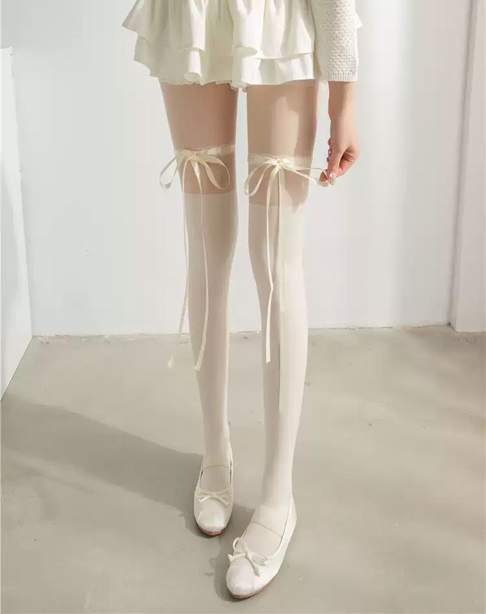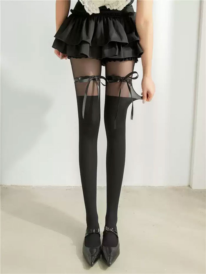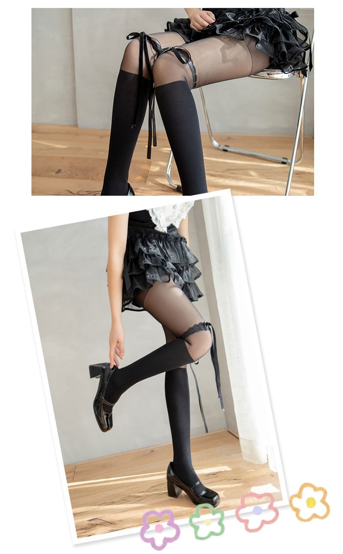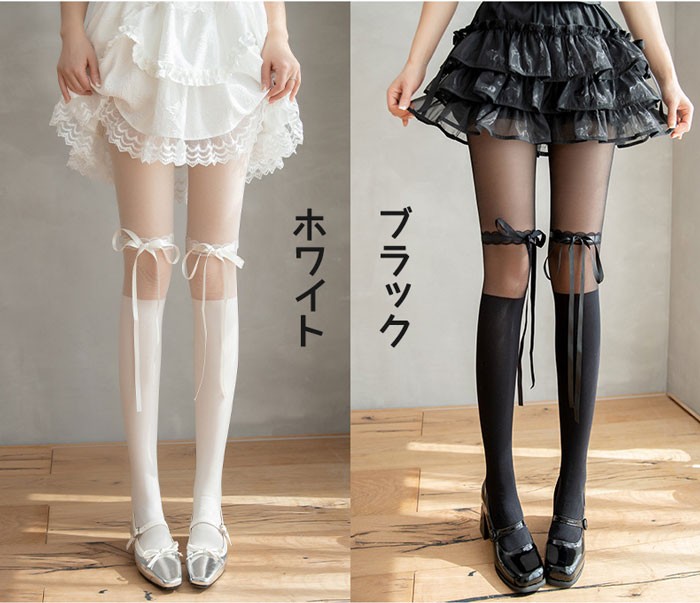 レース タイツ ロリィタ リボン 靴下 インナー 下着 ナイトウエア 早い者勝ち ホワイト ブラック ホワイト ブラック