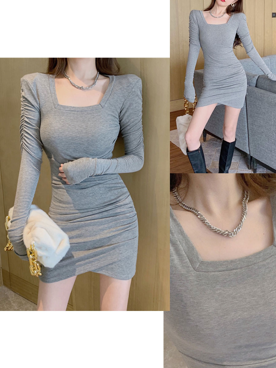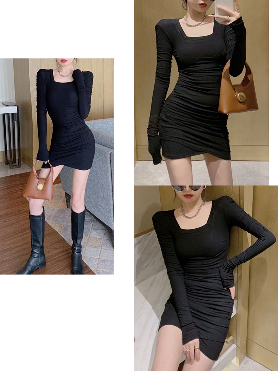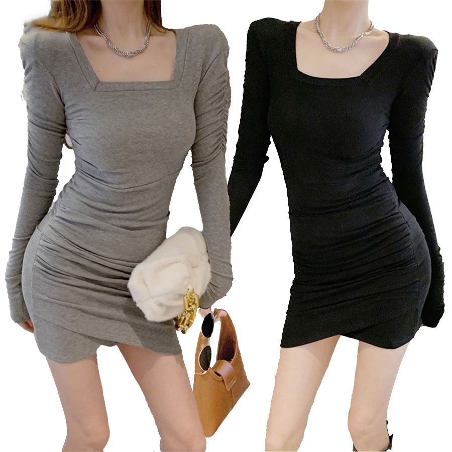 キャバ 魅惑 ドレス レディース 黒 パブ 長袖 レース タイト スカート エレガント プリーツ 韓国 セクシー