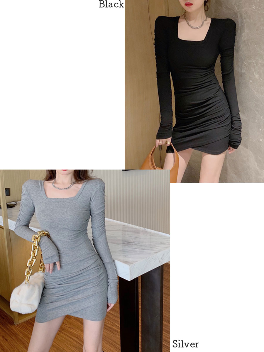 ワンピース 長袖 レディース きれいめ レディースファッション 超目玉商品 ブラック シルバー M L XL