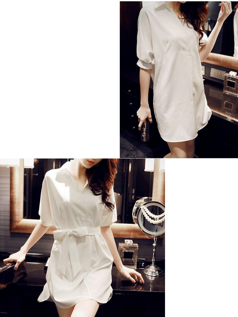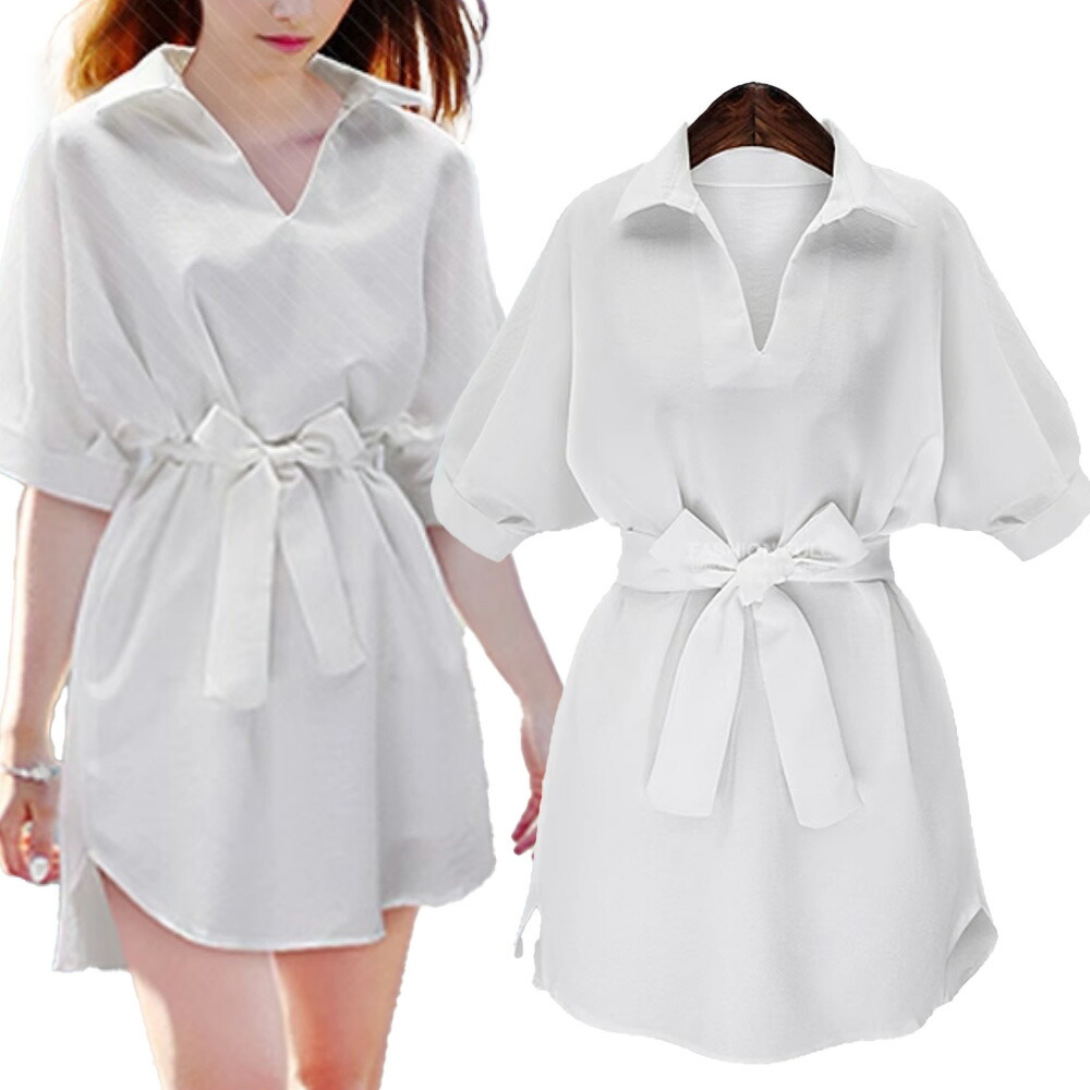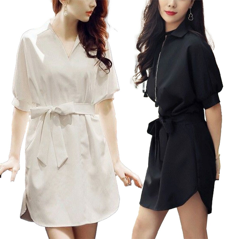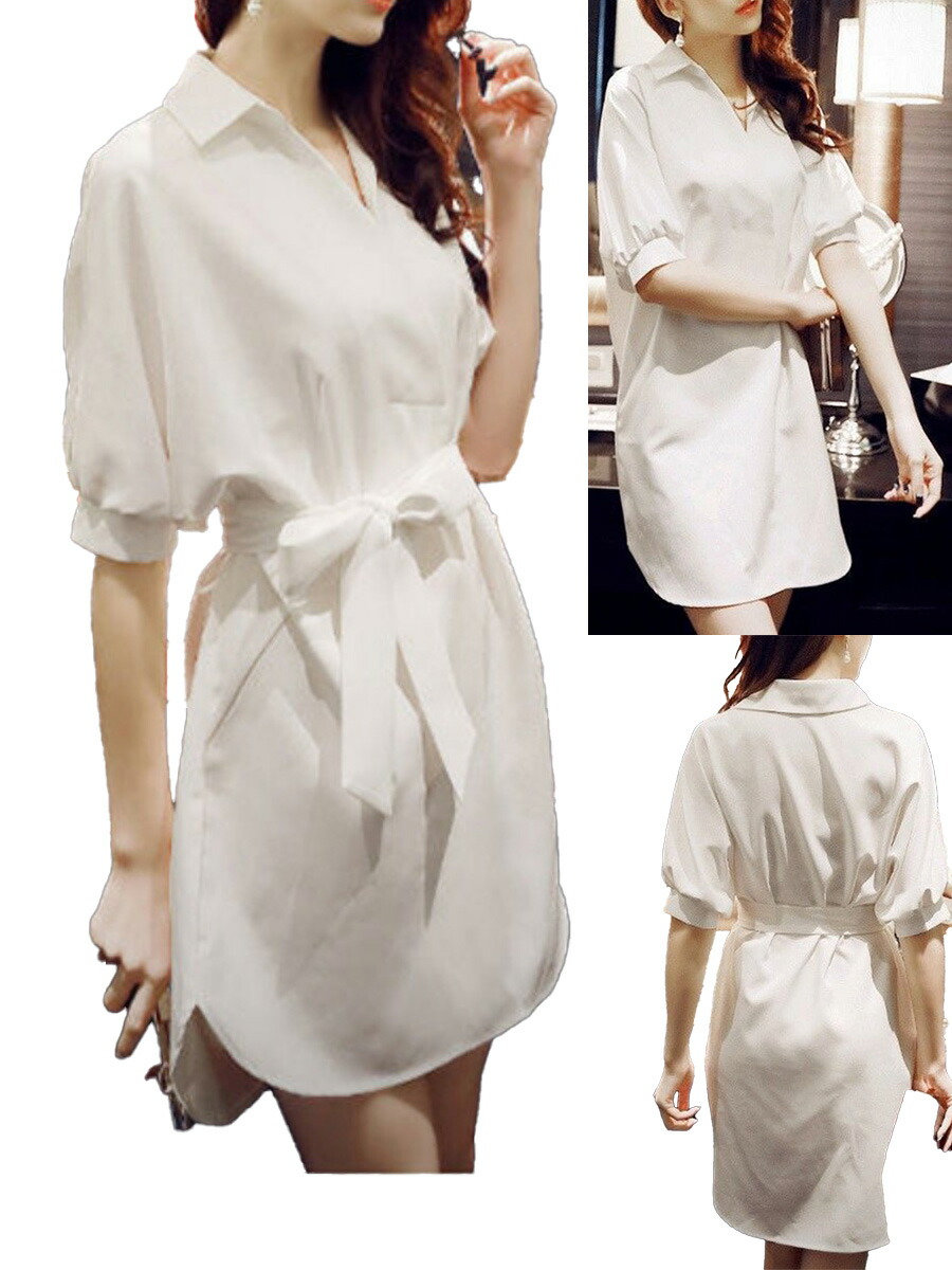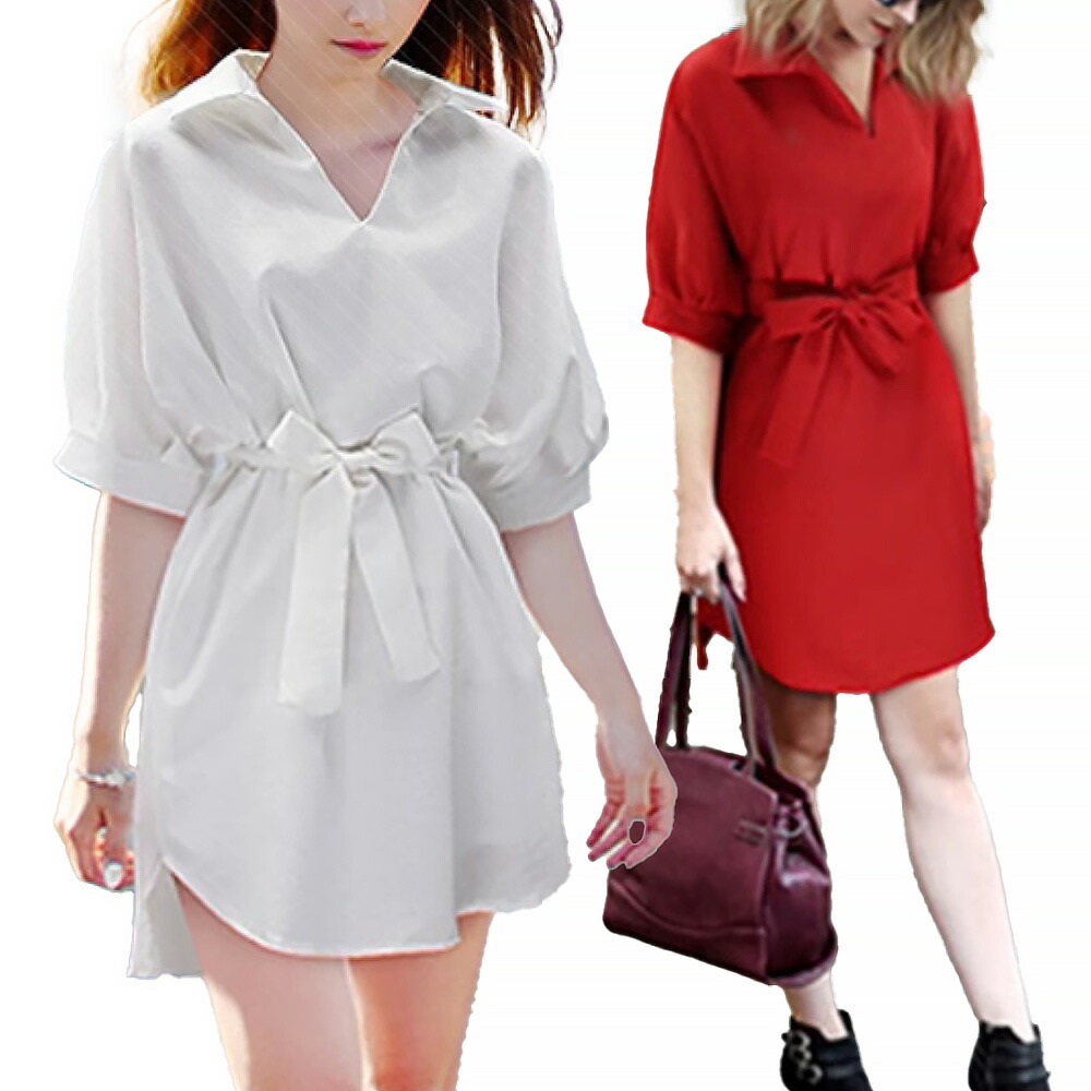 シャツワンピース 半袖 五分袖 ブラウ レディースファッション 超目玉商品 M L XL