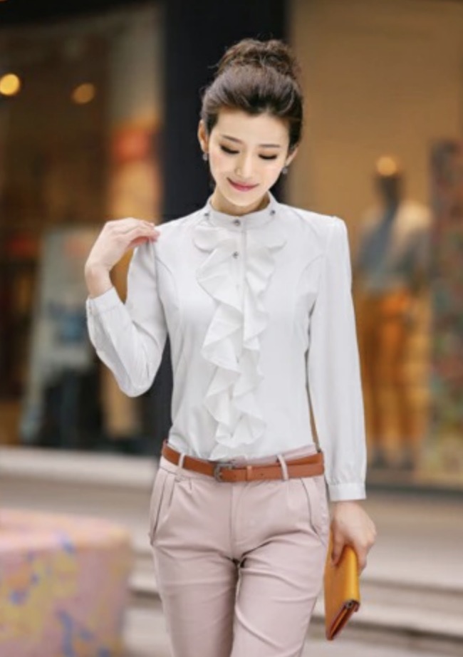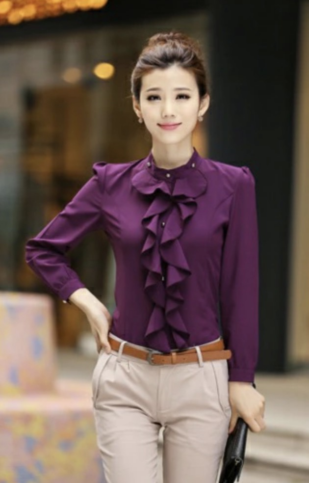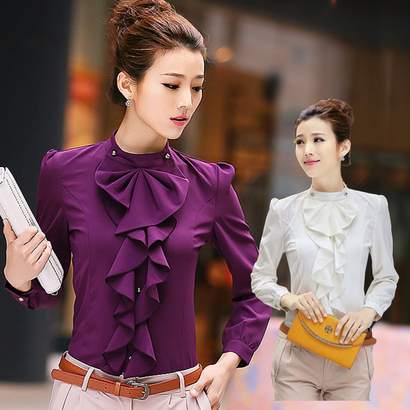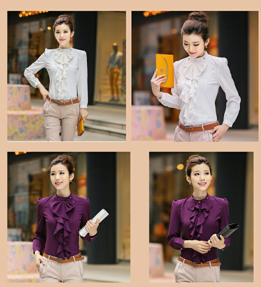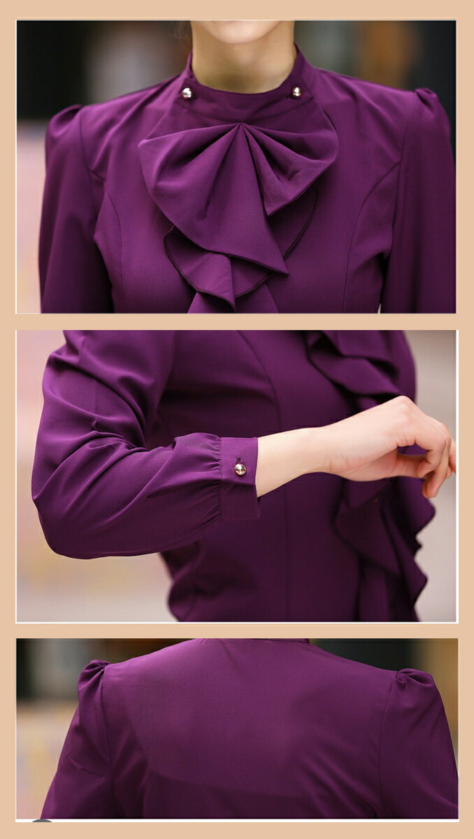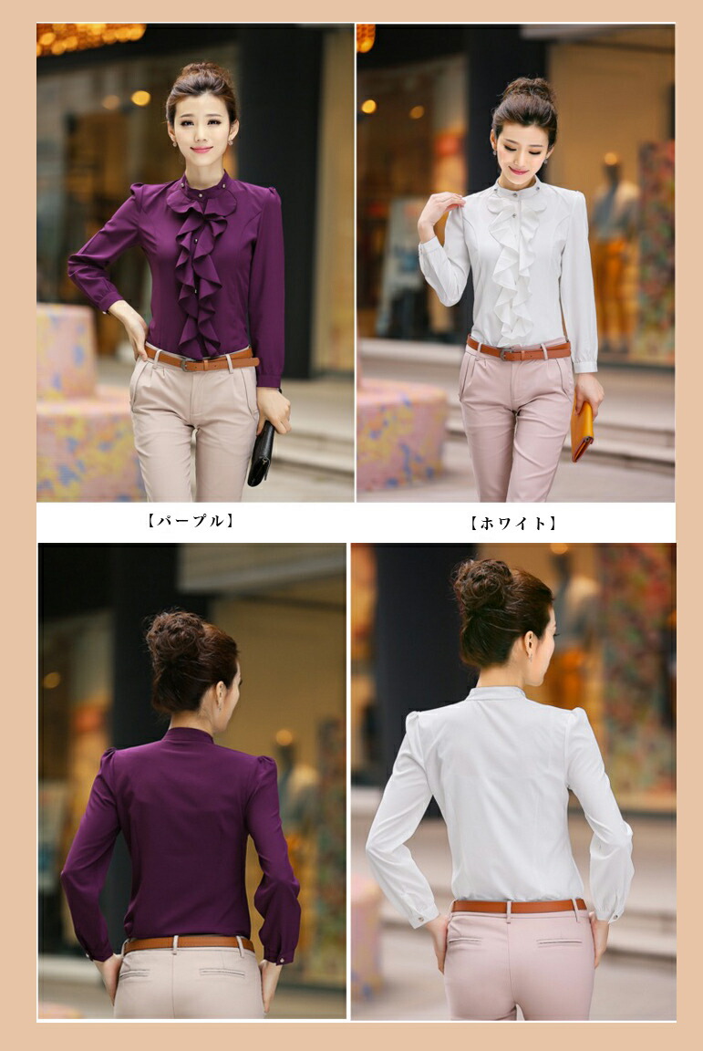 ブラウス フリル レディース 立ち襟 トップス シャツ ブラウス 新登場! パープル ホワイト M L XL XXL