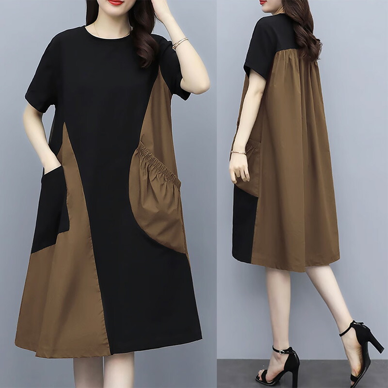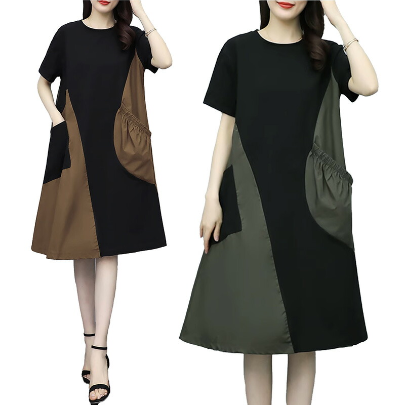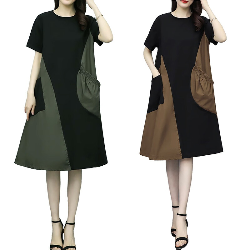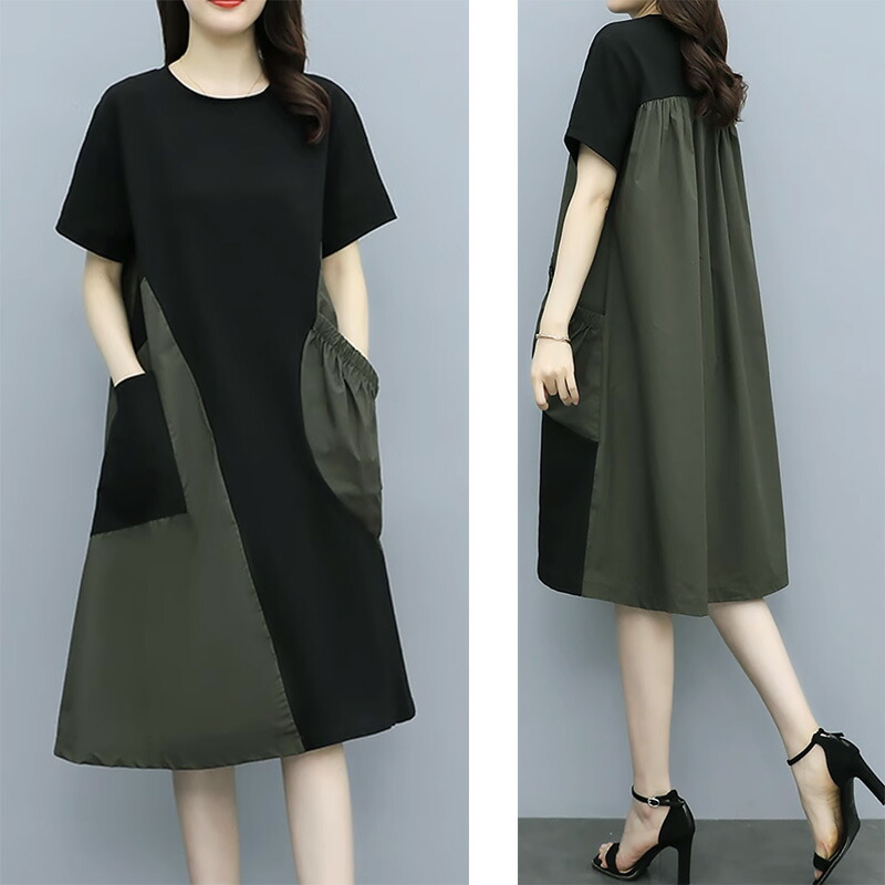 ゆったり カジュアル 半袖 ワンピース レディースファッション 新登場! 茶系 brown 緑系 green M L XL 2XL 3XL