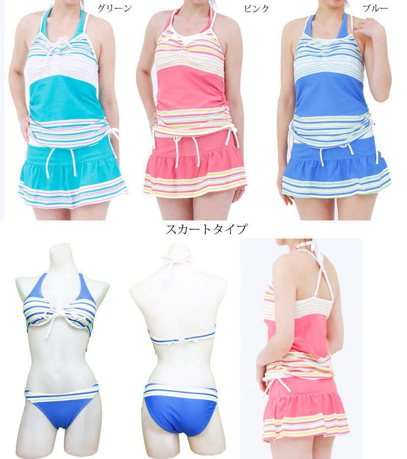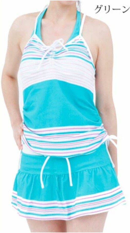 水着 体型カバー タンキニ レディース レディースファッション 新作 9号M 9M 11号L 11L ピンク(スカート) ブルー(スカート) グリーン(スカート)