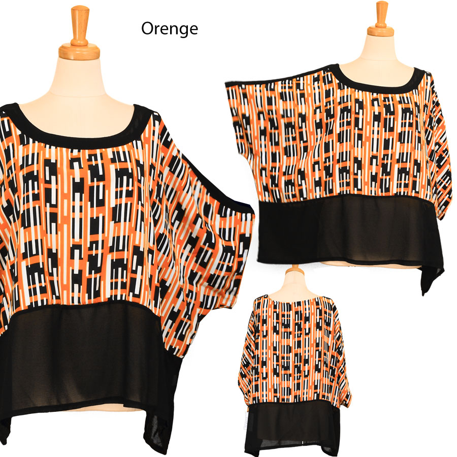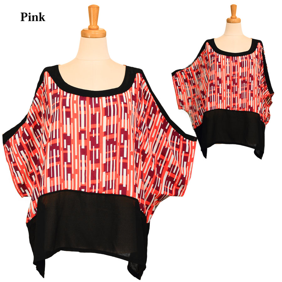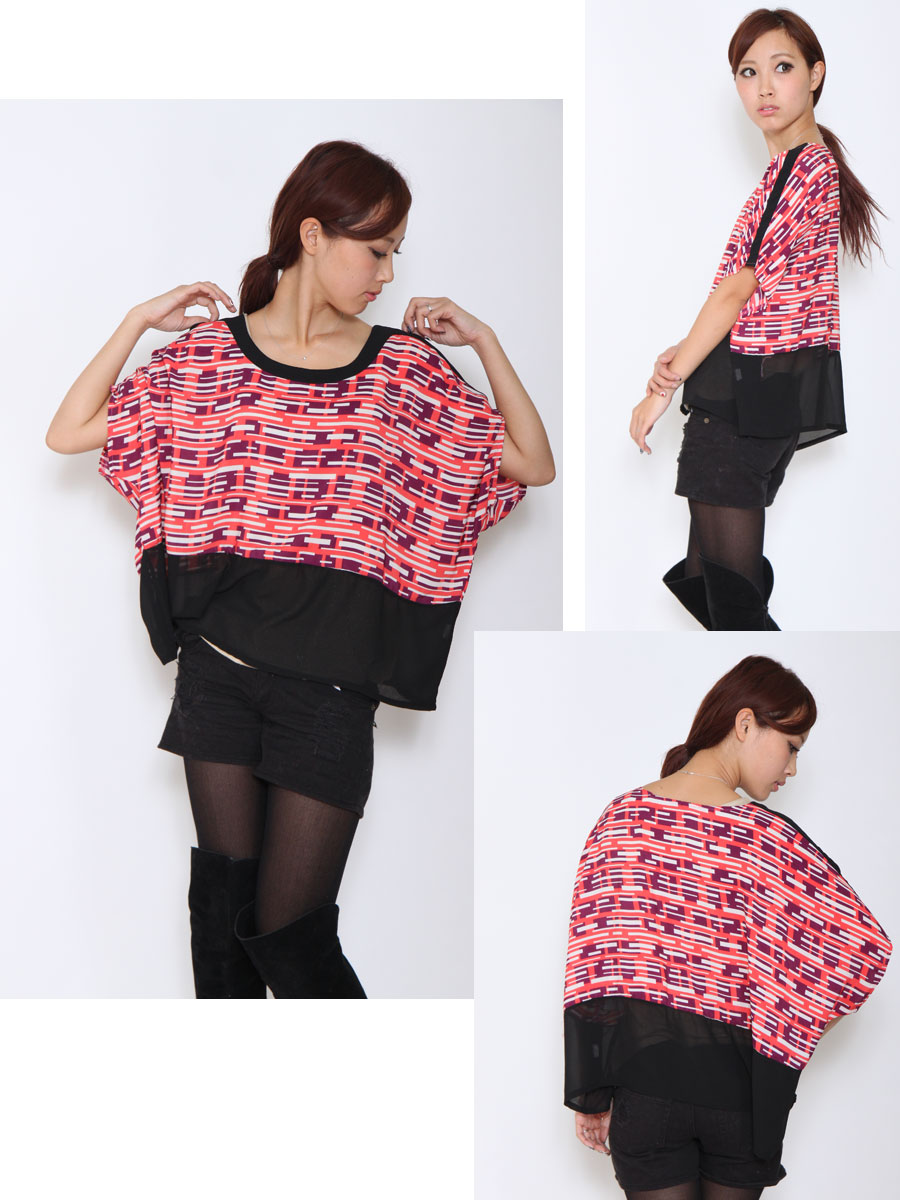 シフォン チュニック トップス ドルマ レディースファッション 超目玉商品 ピンク横柄 モデル着用 ピンク縦柄 イエロー レッドブラック