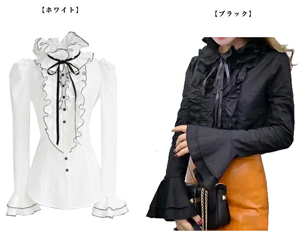 ブラウス レディース 立ち襟 スタンド トップス シャツ ブラウス 新登場! ホワイト ブラック M L XL