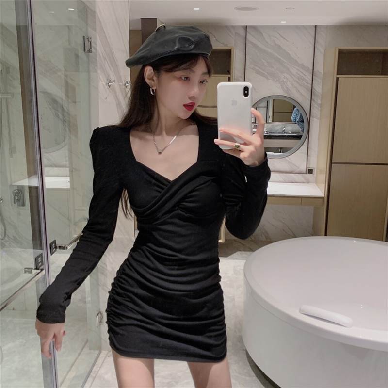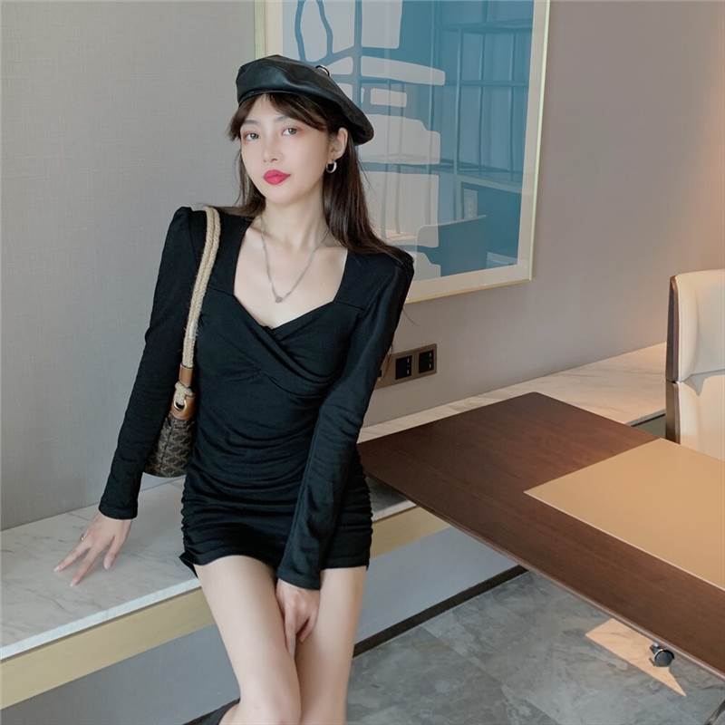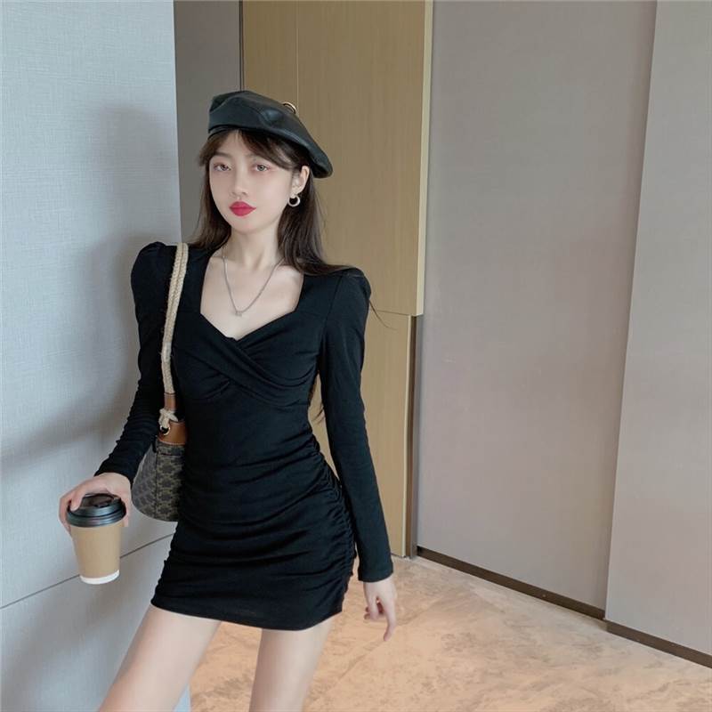 ワンピースドレス 黒 無地 ミニ セクシー キ