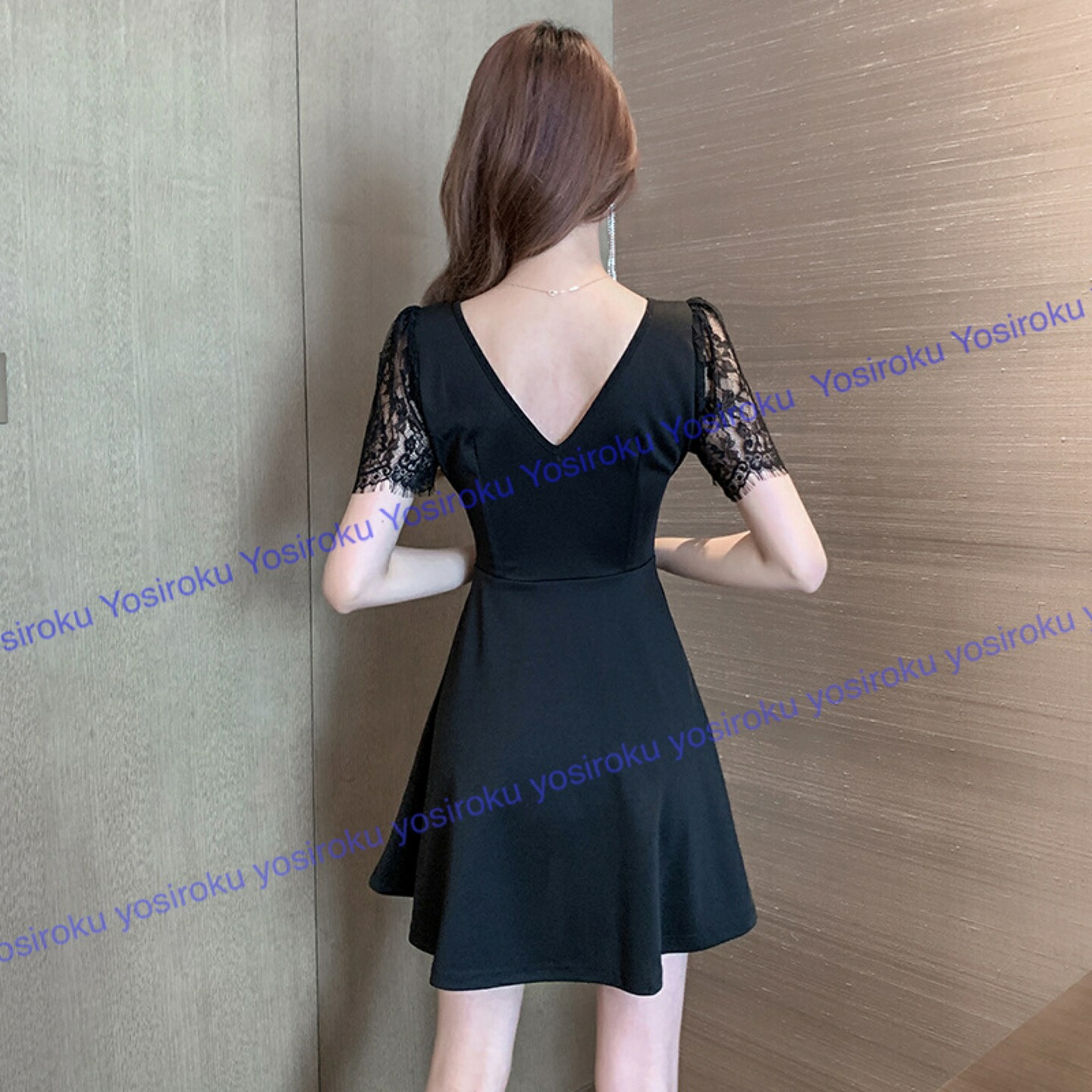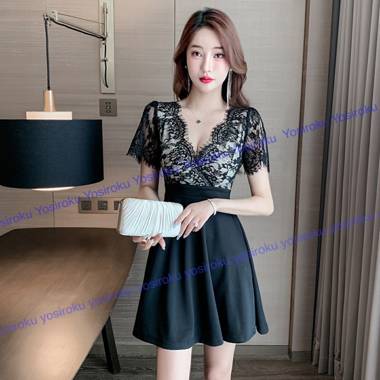 キャバ 魅惑 ドレス レディース 黒 パブ 長袖 レース タイト スカート エレガント プリーツ 韓国 セクシー
