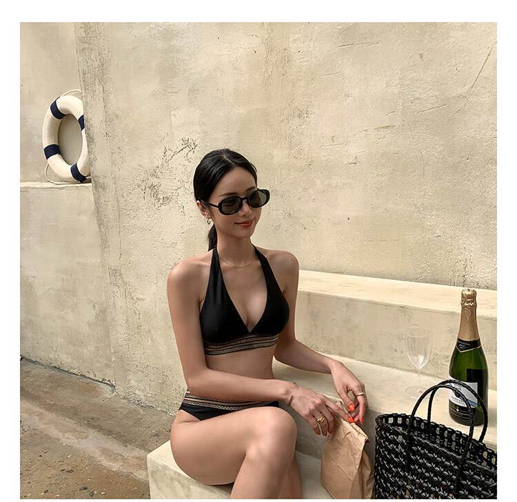 ビキニ 水着 レディース 黒 ホルターネック セクシー カッコイイ セパレート 上下セット ハイレグ sexy ブラジリアン ブラック 無地 柄 アジアン エスニック 女性用 個性的 海外 大人