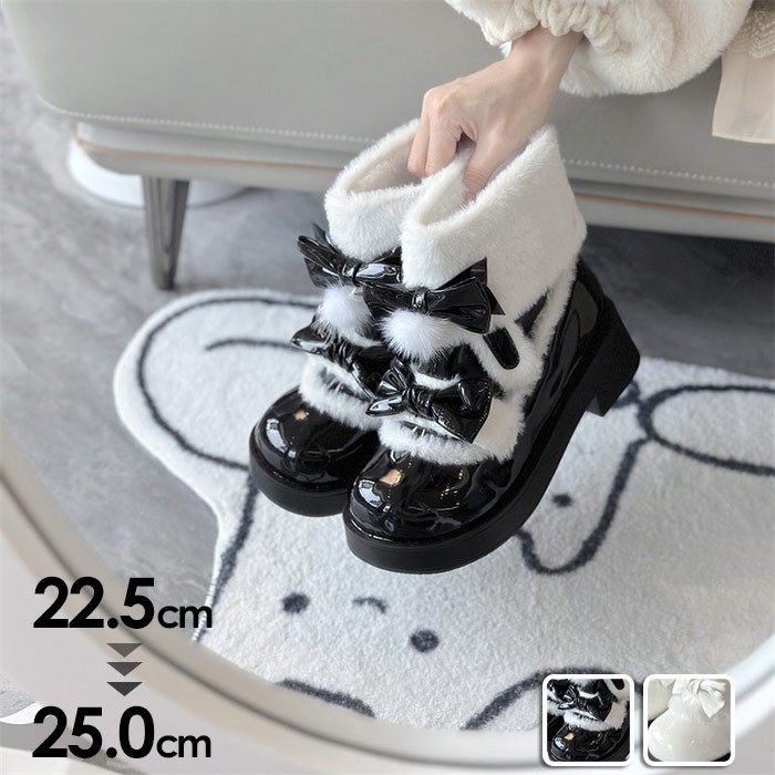 シューズ ショートブーツ レディース ボア付き 春 秋 冬 もふもふブーツ ロリータ靴 可愛い 姫様 女の子 おしゃれ 日常 美脚 ブラック ホワイト di004m6m6m6 暖かい