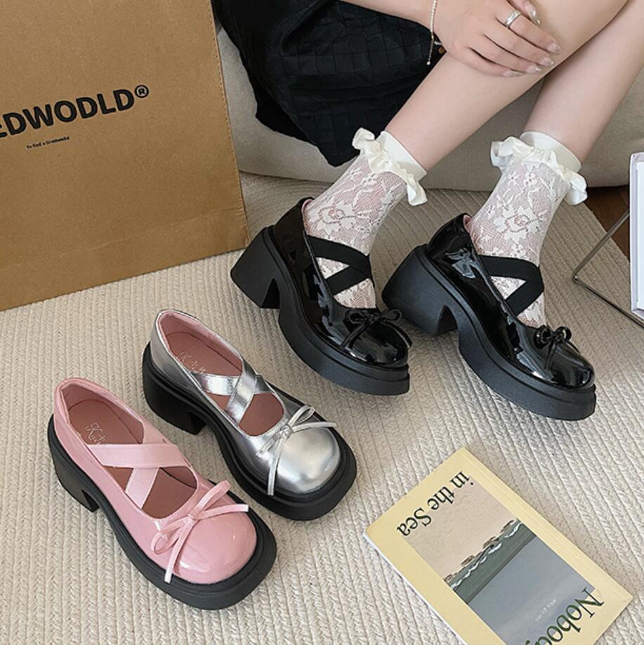 ロリータパンプス レディースシューズ 可愛いシューズ 厚底 お嬢様風 萌え系 靴 ゴスロリ ロリータ 蝶結び 太いヒール ロリータ靴 ロリータ風 メイド靴 文化祭 ハロウィン クリスマス パー 学園祭