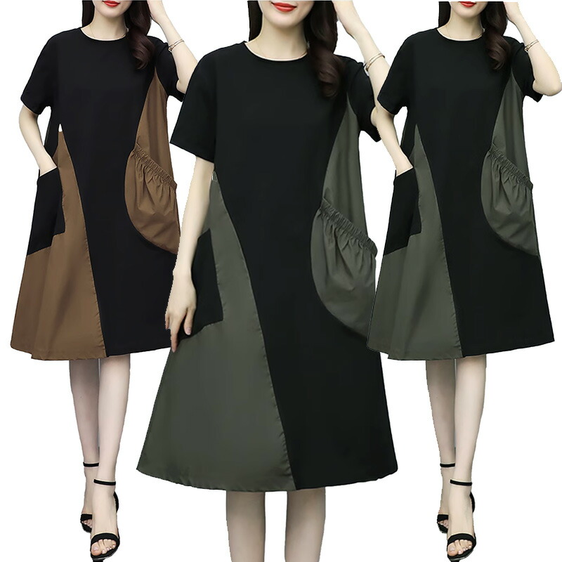 ゆったり カジュアル 半袖 ワンピース きれいめ 大人 上品 レディース 春 秋 冬 ロングワンピース 着痩せ 細見え 大きいサイズ aライン レトロワンピース ポケット 40代 50代 60 30代