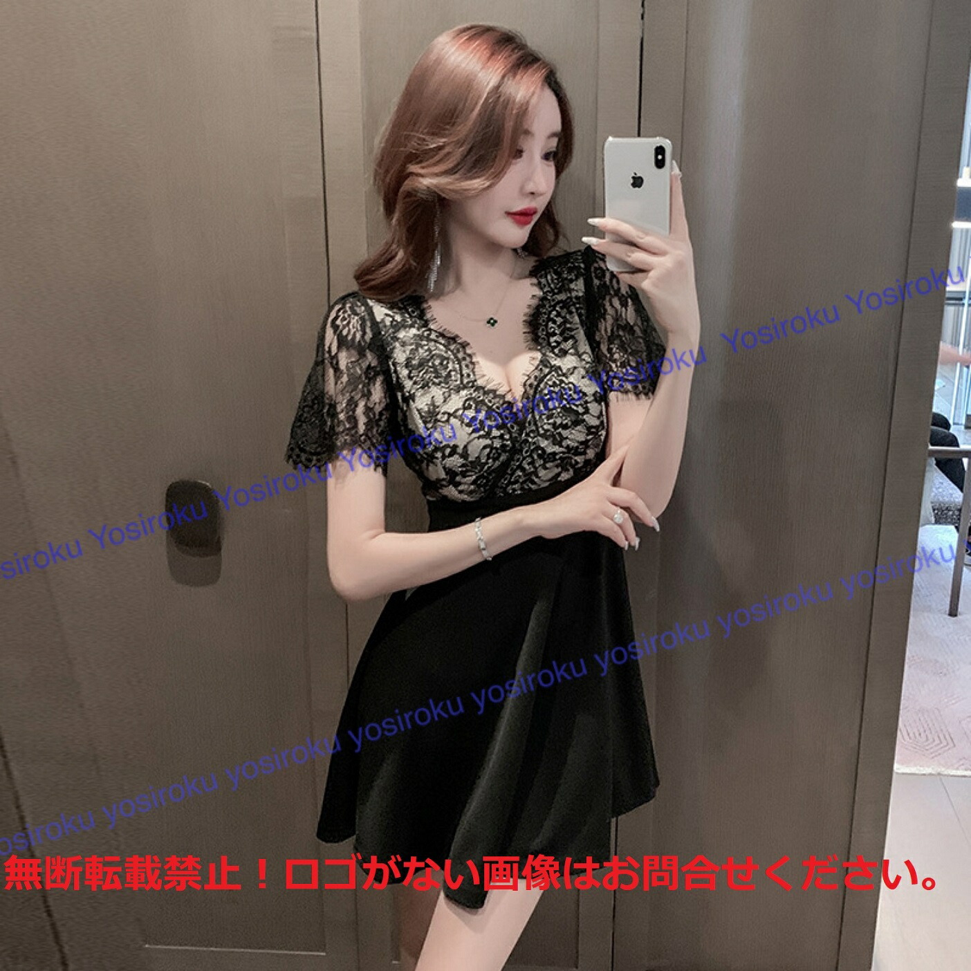 キャバドレス 胸谷セクシー 前後深 レディースファッション ドレス 花柄レース切替ドレスワンピース