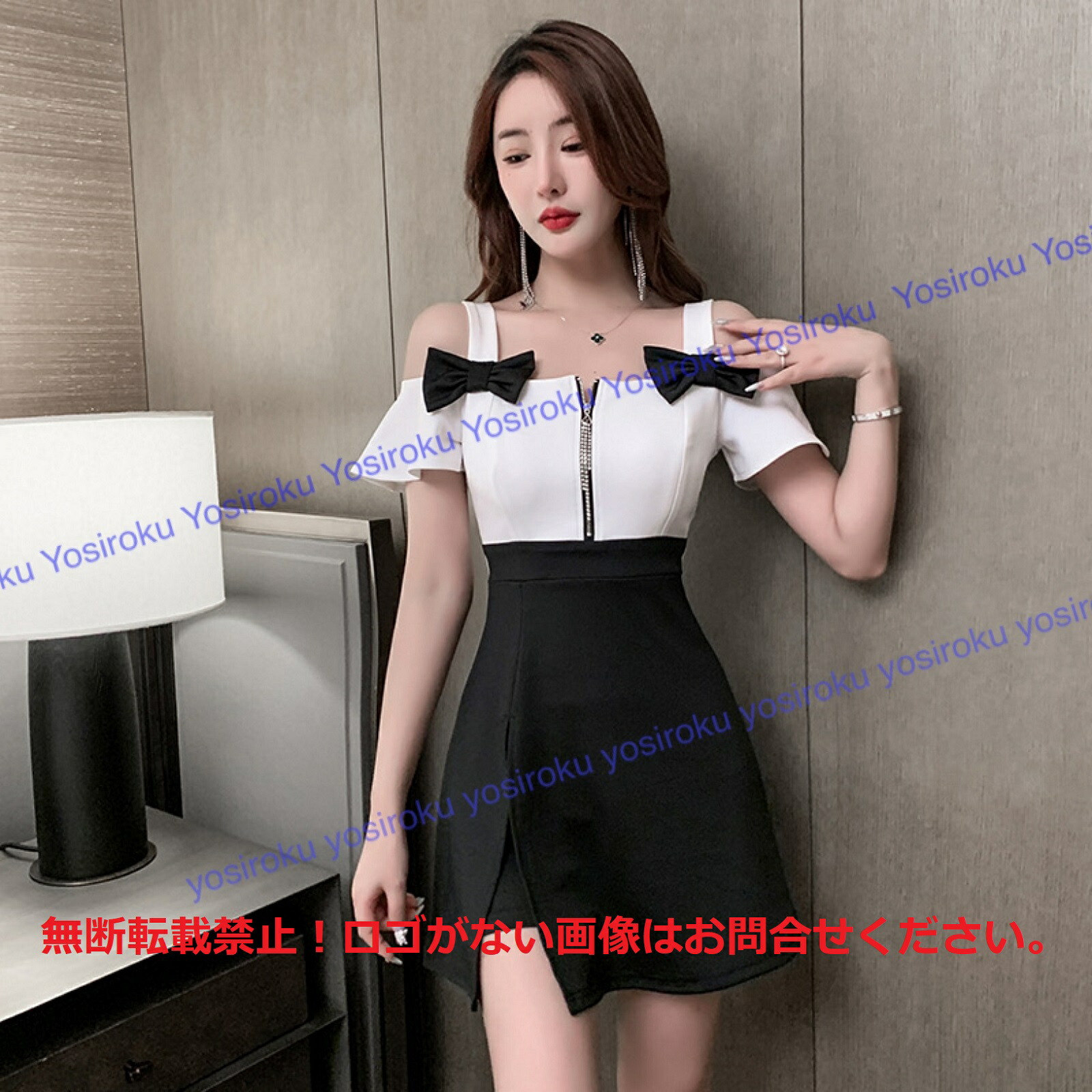 キャバドレス 肩出し 可愛いリボン ワンピース レディースファッション ドレス ショーツ2点セット