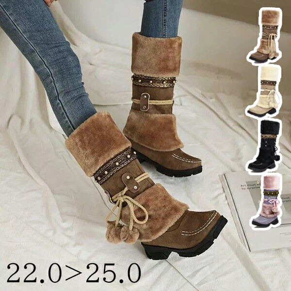 レディース スノーブーツ ロングブーツ ボア フェイクファー スエード あったか 可愛い ふわふわ もこもこ ロリータ リボン 防寒 通勤 大量注文にも対応しています